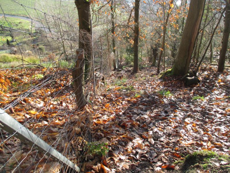 Durch den Zaun erhascht man einen Blick hinunter auf den Garten.