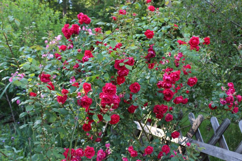 auf Paul Scarlett Climber wäre ich nie gekommen, von den Blüten her könnte es stimmen, steife Triebe wie eine Kletterrose hat sie, wird aber nie so hoch. Den Strauch schneide ich nicht zurück, einkürzen tue ich nicht, nur auslichten.