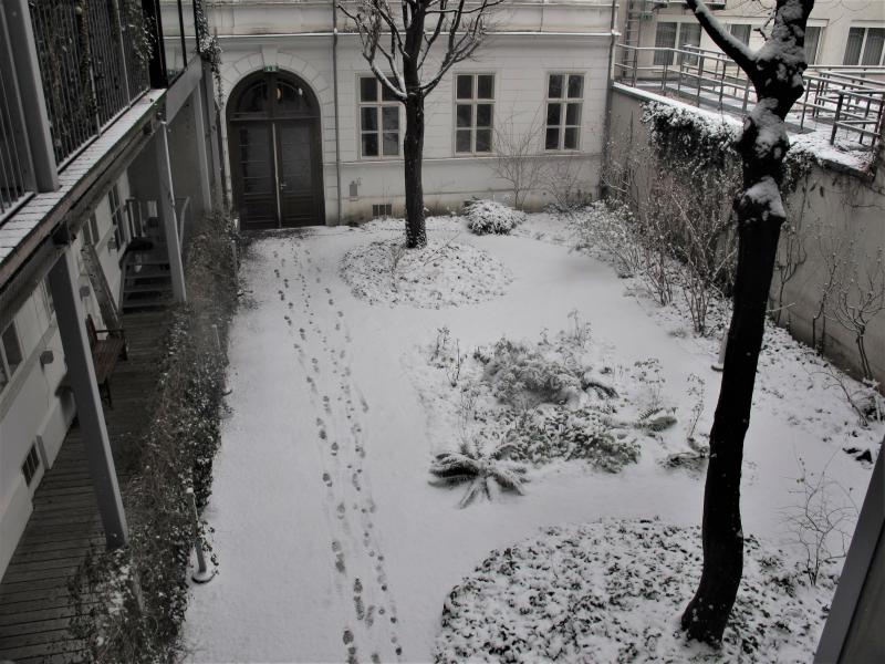 Diese Nacht hat es sogar bei uns geschneit, was ja wirklich selten vorkommt. So habe ich mich heute morgen sehr gefreut, dies beim Blick aus dem Schlafzimmer zu sehen: