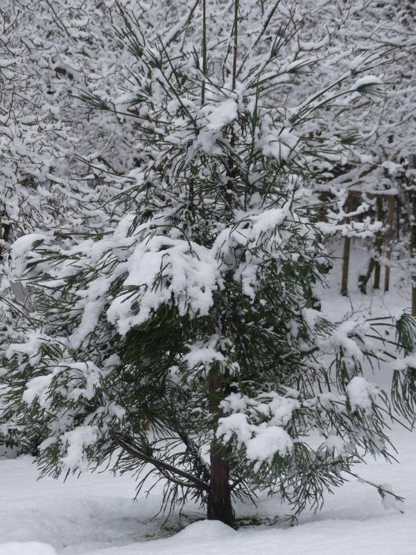 Ich bin überrascht, dass unter den Cryptomerien auch die die Form 'araucarioides' bislang ohne Schäden durch den Schnee gekommen ist.