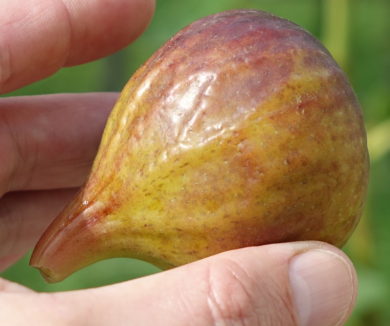 Brusset schreibt dazu: Couleur jaunâtre à vert violet pour les figues fleurs, de brun à violet foncé pour les figues d’automne, also Herbstfeigen braun bis dunkel violett