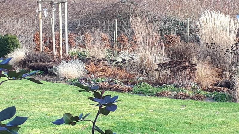 Nach dem unendlichen Dauerregen hier wird es jetzt Zeit mit dem Rückschnitt. Alles wird matschig und bedrängt die Geophyten, die schon deutlich ans Licht drängen. Wenn wir witterungsbedingt noch länger warten müssten, würde das Schneiden zur Feinarbeit zwischen all den Zwiebelchen. :P