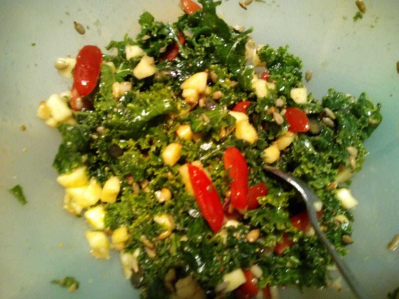 und bevor Missverständnisse aufkommen: Wir können auch Grünkohlsalat mit Apfel, Paprika, Tomate, Quittensenf und Nüsse.... :D