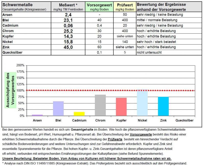 Mit "Erde in den Mund" hat das sicher nichts zu tun, so wie ich das verstanden habe, ist der "Vorsorgewert" ein Maß dafür, in wieweit Kulturpflanzen die Schwermetalle aus dem Boden aufnehmen, und ob dies beim Verzehr der Pflanzen gesundheitliche Auswirkungen haben kann. Sprich, wenn Du Gemüse anbaust, was viel Nickel aus dem Boden aufnimmt und in der Pflanze anreichert, ist das evtl. bedenklich für die Gesundheit. Bei Chrom, Kupfer und Zink könnte es ggf. kritisch werden, gerade weil ein erhöhter Gehalt bei letzteren bedeutet, dass die Pflanzen es bevorzugt aufnehmen (so lese ich jedenfalls den Hinweis unten).