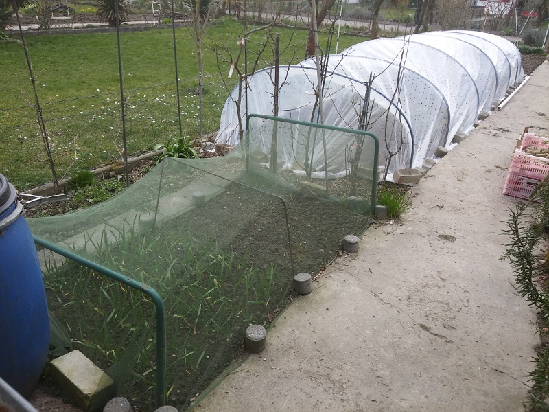 Weil das Wetter wohl nicht hundertprozentig mitspielen wird, wurde der Folientunnel aufgebaut. Mit Trinkwasserleitung 20x2mm in Baustahlstangen zum fixieren im Boden.