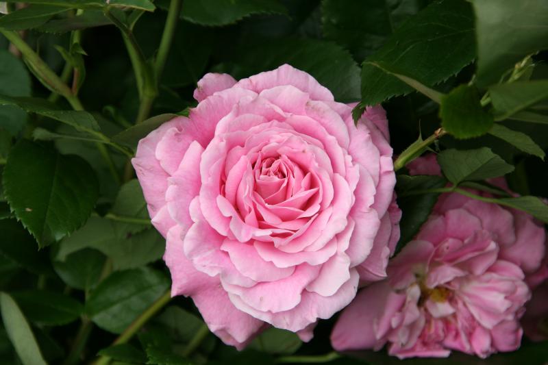Eine meiner Favoriten der Austinrosen ist die Hyde Hall, eine große hohe dauerblühende Strauchrose. Rechts im Vordergrund ist die Louise Odier, im Hintergrund ist die Hyde Hall. Das einzige was auszusetzen ist an Ihr, sie hat sehr viele böse Stacheln-