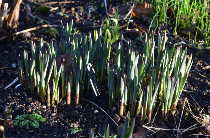Auf den ersten Blick hat sich im Vergleich zum Foto von Anfang Januar fast nichts im Garten getan; aber eigentlich ist es kein Wunder, war das vor vier Wochen doch so ziemlich der einzige Tag mit Sonnenschein, ansonsten war's ständig kalt, grau und regnerisch. Aber beim genaueren Blick in die Beete merkt man doch deutlich, dass mittlerweile überall die Frühlingsblüher aus dem Boden spitzen, und die ersten haben mittlerweile ihre Blüten geöffnet.