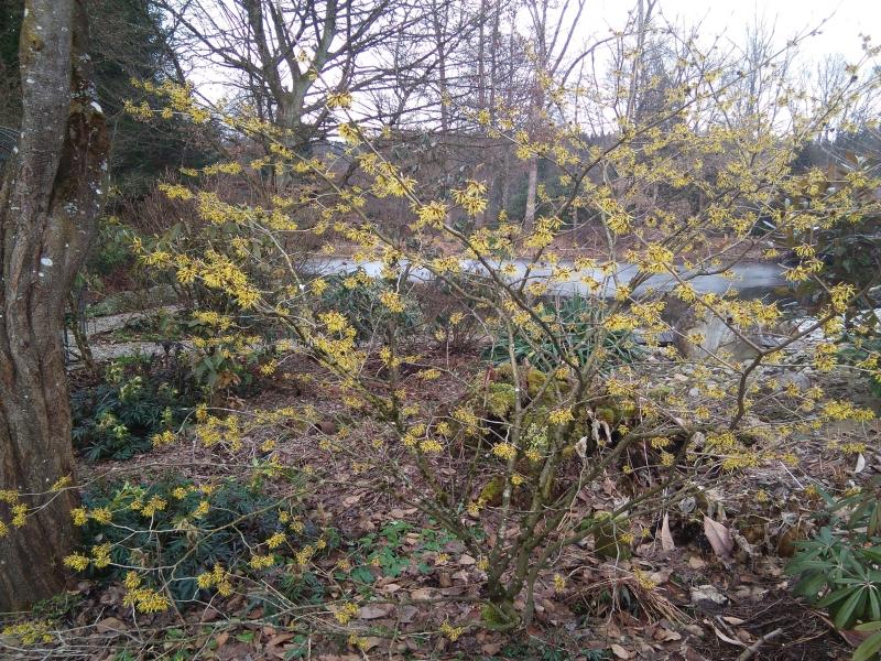 Hier blüht Hamamelis x intermedia 'Orange Peel', meine einzige. die Wahl war richtig, die Farbe begeistert mich jedes Jahr von neuem.