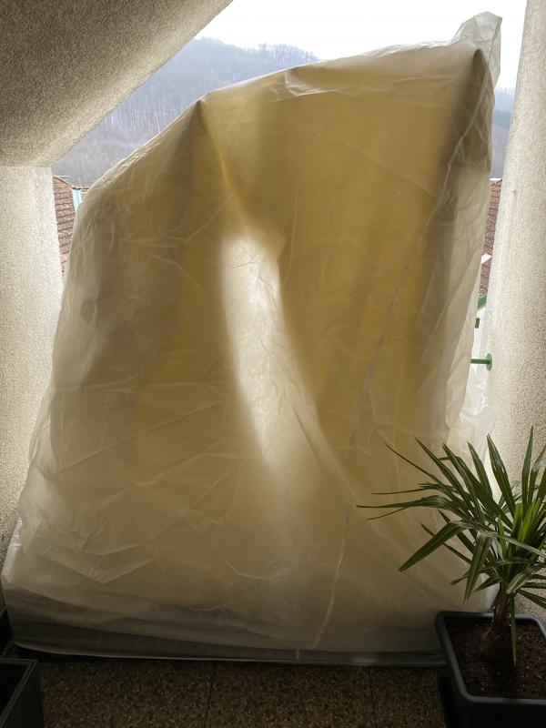 Die Neupflanzung (Campanière) kann ich wohl leichter anders schützen, da sehr kleines Volumen unterm Vliessack. Ich hab schon früher mit Wärmeflasche und / oder PET-Flaschen mit heißem Wasser oft Temperaturen im deutlichen Plusbereich erreicht, wenn auch nur vorübergehend. Dann sank die Temperatur aber auch nur langsam ab, sondass es noch in der Früh unterm Vlies deutlich wärmer war als außerhalb. So habe ich zB meinen Punica granatum, damals noch klein, durch ein paar klirrend kalte Nächte gebracht. Ich weiß gar nicht obs notwendig war weil nicht zu so fortgeschrittener Jahreszeit, aber ich wollte es bei der Neupflanzung nicht riskieren.