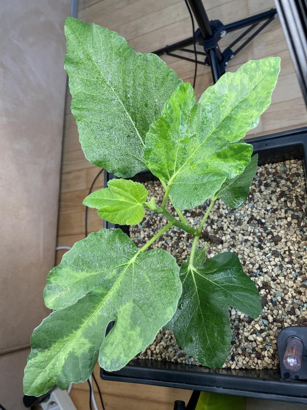 "Schöner" fig mosaic virus (FMV) bei der Italian-258 von Achilles an manchen Blättern.