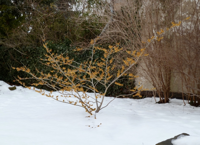 Ich bin grad so froh! :D Nach einer ähnlichen Frostperiode 2018 waren die Blüten der Hamamelis braun, die Sträucher haben zum Teil erst sehr spät und sehr spärlich ausgetrieben. Eben habe ich eine Runde durch den Garten gemacht. 'Orange Beauty' sieht unbeeindruckt aus ...