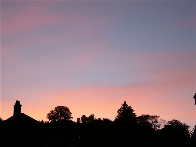 Vor wenigen Minuten hatten wir ein schönes Morgenrot am HimmelEs hat wenige Schleierwolken be frischen 5.4 °