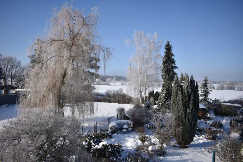 Hier war die Nacht nochmal ziemlich eisig, -8°C oder noch etwas darunter. Auch heute ist der Himmel wieder strahlend blau, aber der eisige Wind weht immer noch ein wenig. Aktuell sind's immer noch -3°C, es wird wohl ein weiterer Eistag bleiben. Gegen Abend sollen dann aber Wolken aufziehen, die Temperatur steigt, und morgen Mittag könnte es womöglich etwas regnen - hoffentlich wird's nicht glatt. Ab Dienstag ist dann frühlingshaftes Wetter vorhergesagt, hoffentlich war's das dann mit dem Winter.