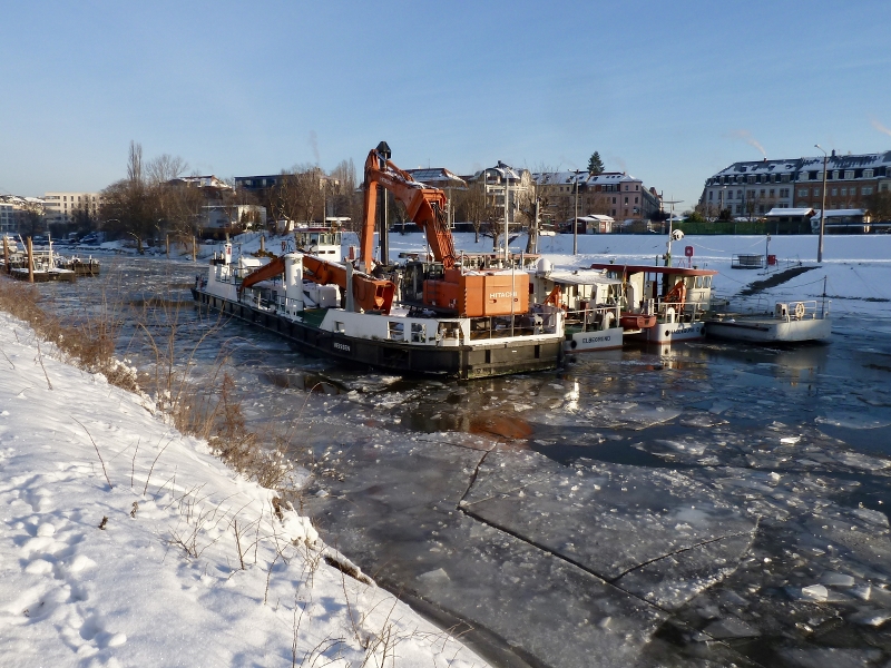 Ein schneller Spaziergang bei -13°C, hinunter an die Elbe. Ich hatte auf Eisgang gehofft ...