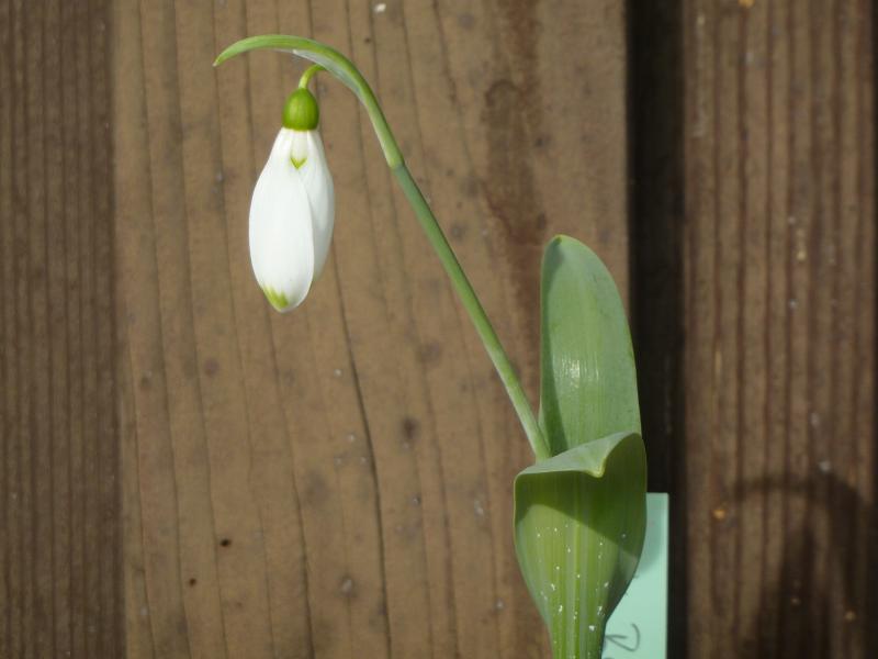 Ein "wechselndes" Schneeglöckchen; Die Markierungen auf den inneren und äußeren Segmenten können grün beginnen und sich mit zunehmendem Alter der Blume gelb färben. Ich verstehe, dass dies draußen angebaut werden muss, damit es die ultravioletten Strahlen der Sonne direkt empfängt. Unter Glas gewachsen kann es grün bleiben.
