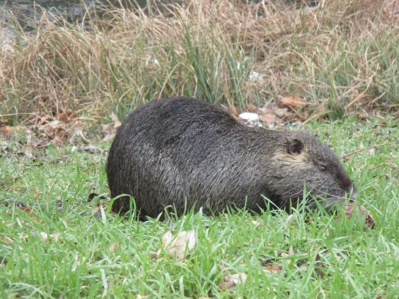Heute mit dem Fahrrad in der Stadt - auf dem Weg zurück am renaturierten Bach entlang, sehe ich aus den Augenwinkeln eine große fette Katze - nein, das war keine Katze - umdrehen - zurück - aha, ein Nutria - wie er weiter oben zur Schlachtung und Verzehr empfohlen wird.