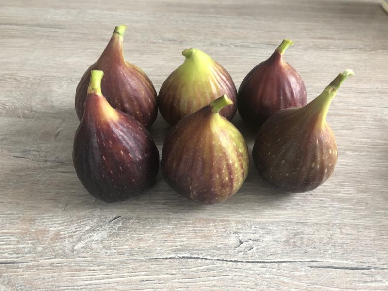 Die Herbstfeigen reifen ab Ende August bis zum ersten Frost. Der Großteil der Ernte fällt auf Anfang bis Mitte September. Brebas Mitte-Ende Juli. Habe einen direkten Vergleich einer English Brown Turkey (Topf) Breba (mittig) und eine Breba meiner Unbekannten (außen). Die Breba Ernte meiner Unbekannten beginnt etwa einen Monat früher als bei den ausgepflanzten EBT.