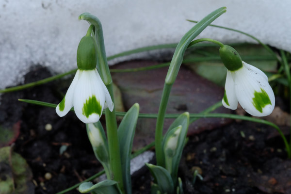 Dort, wo ein paar Sonnenstrahlen das Beet erreichen, taut der Schnee recht schnell und innerhalb von 2 Tagen öffneten sich hier auch schon einige Blüten.