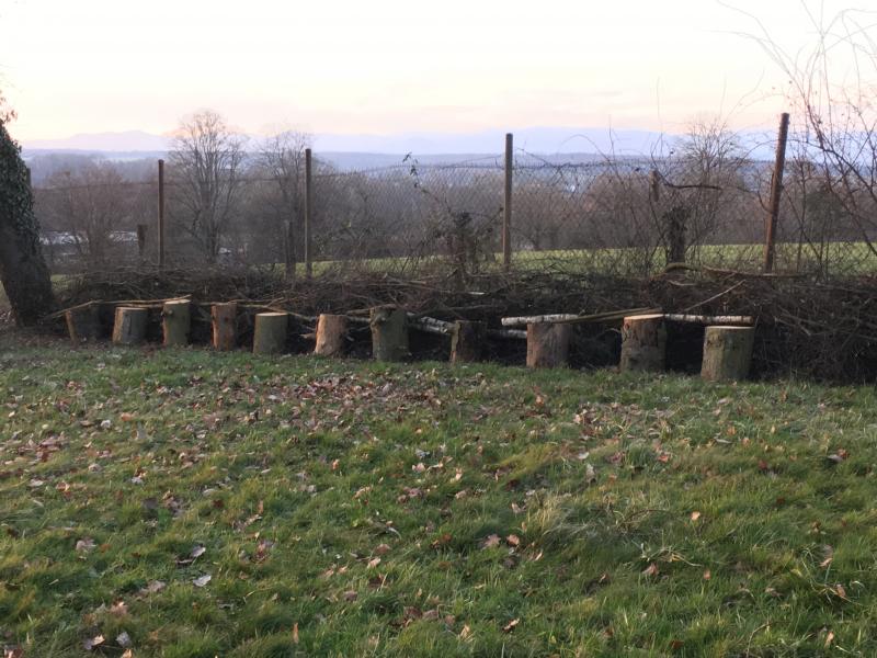 Totholzheckenbau angefangen. Es ist etwas aufwendiger als ich dachte, weil ich die Äste ja nicht einfach auf einen Haufen werfen wollte. D.h. jeder Ast wird zwei Mal in die Hand genommen, z.t. noch zugesägt. Es ist jedenfalls gut für die Ganzkörperwahrnehmung. ;)
