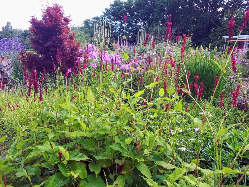 In einem Park sah ich große, von P. Oudolf angelegte Beete, wo die Kerzenknöteriche erstaunlich aufrecht standen - in sandigem Boden.