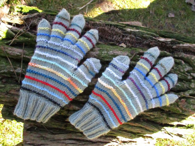 Hier ist der Winter zu Ende und (das zweite Paar) Handschuhe sind fertig. Tolles Timing ::). Ich hatte mich bisher nie an sowas rangetraut, aber das ist ja einfacher als Sockenstricken :D.