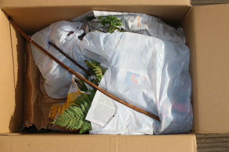 Heute haben wir ein Paket der Gärtnerei Blütenreich erhalten. Die Pflanzen (ein paar Corydalis und Epimedium) waren sehr sorgfältig verpackt, aber natürlich trotzdem gefroren. Zum langsamen Auftauen stehen sie jetzt in ihren Hüllen aus grünem Kunststoff über den Töpfen in einem kalten, relativ hellen und frostfreien Raum.