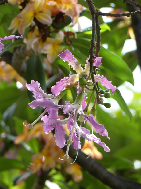 Neben den Tulpenbäumen standen auch die Florettseidenbäume (Chorisia speciosa) zahlreich in Blüte.