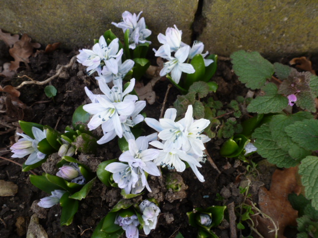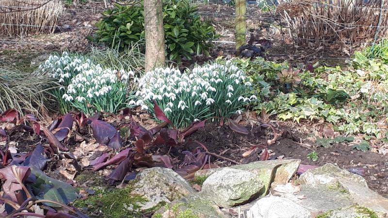 Nur G. nivalis und Flore pleno. Vor Jahren haben meine Kinder und ich mit Eimerchen und Schüppchen Hunderte Pflanzen aus Plaggen ausgegraben, die nach der Vertiefung der örtlichen "Umflut" am Straßenrand lagen. Deswegen hängt mein Herz an diesen Glöckchen. Sie säen sich überall aus, und wenn auch einige dem Schimmel zum Opfer fallen, so werden es doch immer mehr.