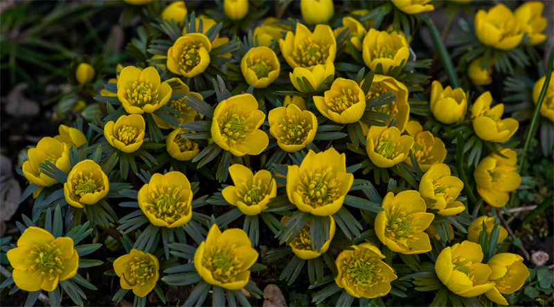 Schön, dass einige schon Mischflächen in der einen oder anderen Form in Arbeit haben. Ich freue mich schon auf Bilder. :D Bei mir blühen sehr, sehr vereinzelt die normalen Winterlinge. Das ist hier noch sehr, sehr weit von einer Massenhaltung entfernt. An einer Stelle habe ich aber doch einen Winterling (bzw. Minigruppe) entdeckt, die nach 'Schwefelglanz aussieht. Und zwar genau dort, wo ich auch dachte mal eine Sorte hingepflanzt zu haben. Ich war mir nur nicht mehr sicher... :-[