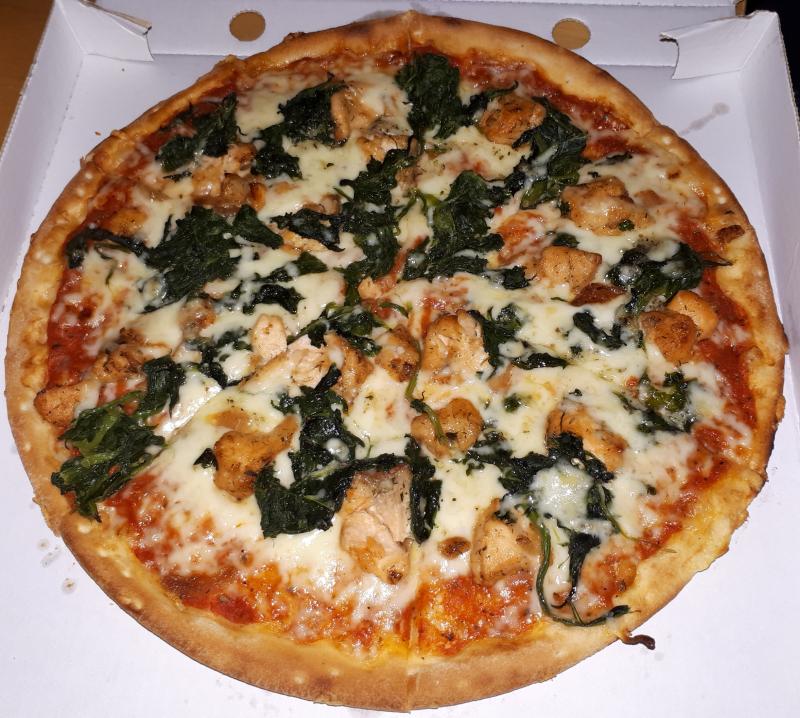 Ich habe schnell Pizza vom Pizzabäcker geholt