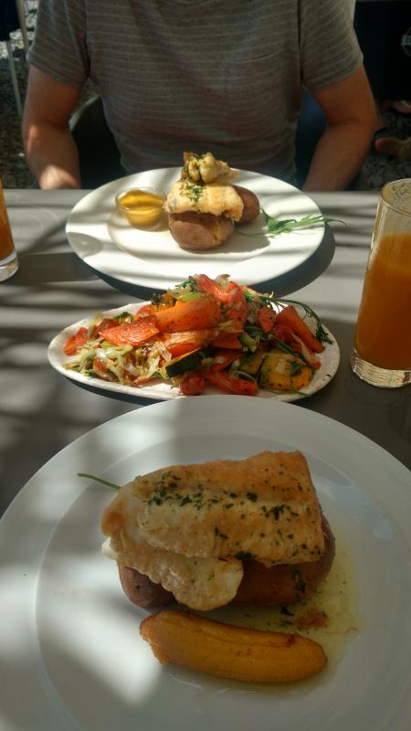 Das war ja ein rundum gelungener Tag.Genauso,wie man es sich im Urlaub wünscht.Blauer Himmel,blaues Meer,ein bisschen Abenteuer(diese Seilbahn ist schon sehr ähem,steil :o),tolles Essen ,ein schöner Garten und Badevergnügen.Toll!