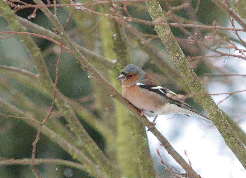 Heute morgen plötzlich eine Invasion von kleinen Vögeln im Garten. Es hatte begonnen zu schneien und es hat sich wohl herumgesprochen, daß es bei mir Futter gibt.