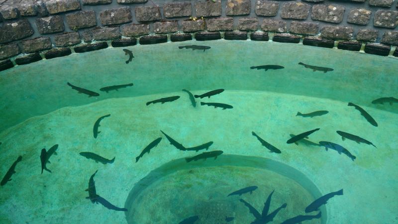 In den verschiedenen Becken wurden die Forellen in unterschiedlichem Alter gezeigt, zudem gab es große Hälterungsbecken mit Zuchttieren.