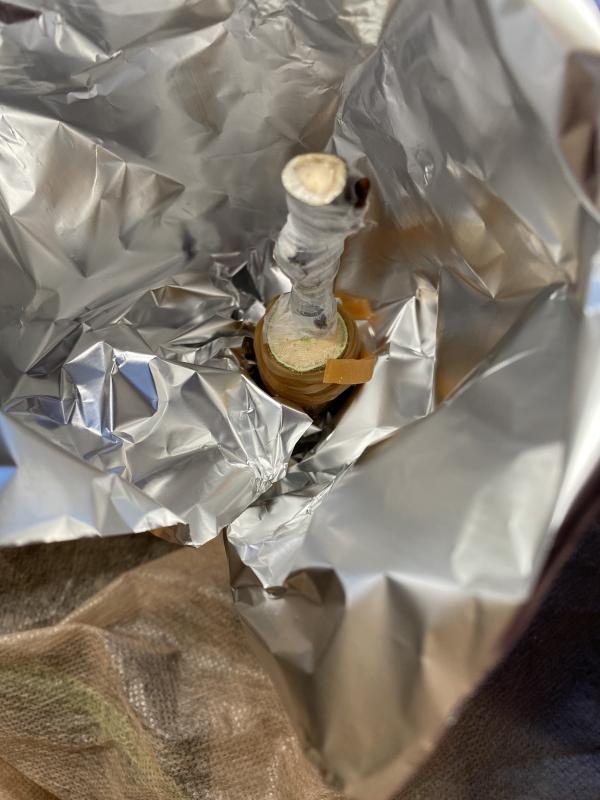 Mit Alufolie vor direktem Sonnenlicht schützen.