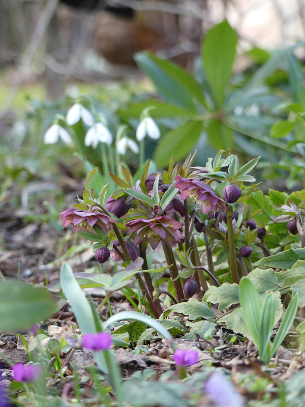 Die Pflanze dazwischen in "fastgelb" hab ich auch als Helleborus torquatus gekauft, aber da hat wohl was anderes mit reingefunkt. Trotzdem hübsch und auch laubwerfend.