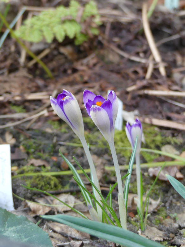 Eine Krokusauslese, die ich letztes Jahr erhielt. Anfangs waren die Blüten dunkler, jetzt ist nur noch im Zentrum ein bläulicher Schein zu erkennen. Diese Selektion von John Grimshaw hebt sich jedenfalls deutlich von allen anderen in meinem Garten ab.