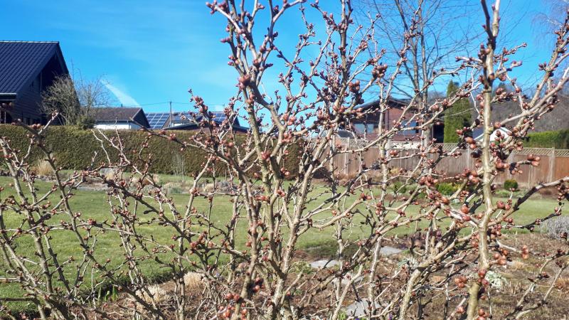 Die Knospen der Märzkirsche Kujo no-may schwellen schon deutlich. :o