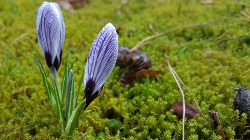 Heute, in der Kälte gab es kleine KrokusWichtel im Moos :D
