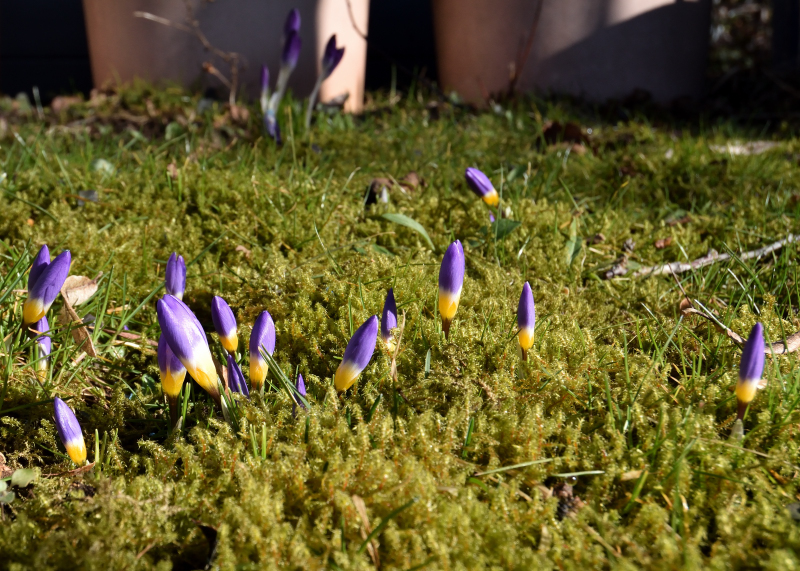 Einen bemoosten Rasen mag Pickwick ( und andere Crocusse ) gar nicht, hier waren mal viel mehr von ihnen.