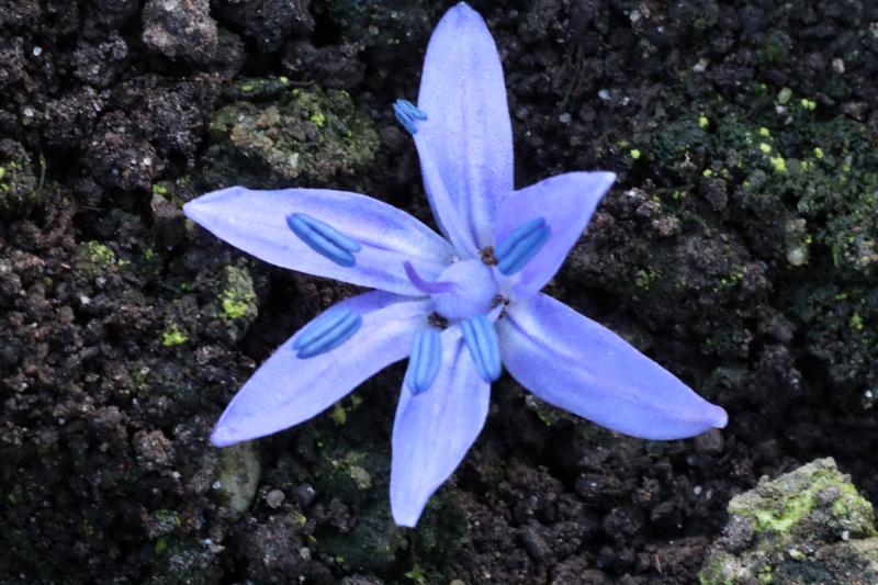 Inzwischen ist auch eine blaue Form vom gleichen Standort aufgeblüht, die ich doch recht eindeutig für Chionodoxa sardensis halte.
