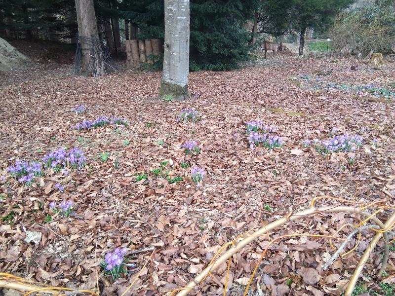Krokusse in solchen Tuffs kommen bei mir nur in den Rabatten vor, auf der Wiese schaut es nicht so rosig aus.