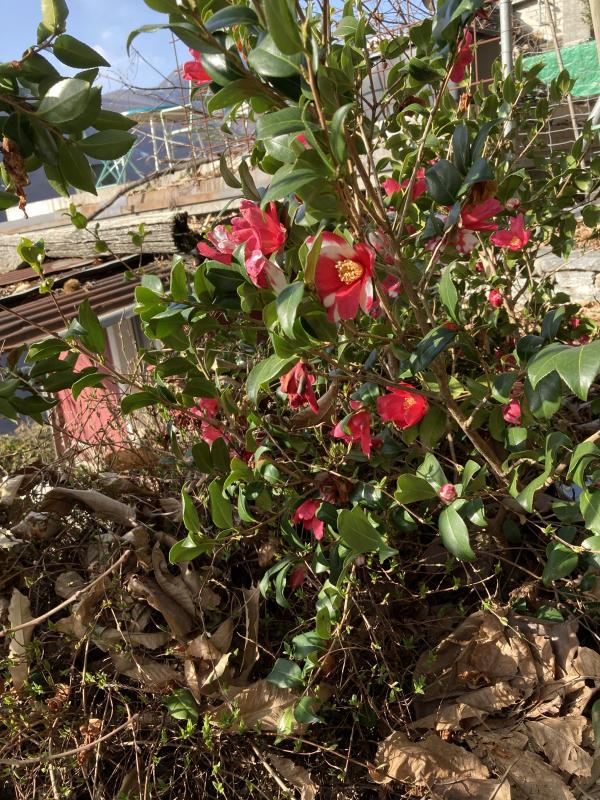 Eingeschneite Camellia hiemalis Shishigashira gestern morgen.