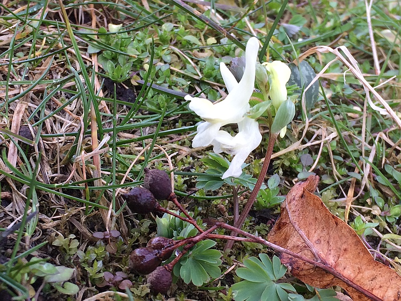 Immer noch ein Lehrstück, das Überraschungen bereit hält: Corydalis sheareri. In den vorangegangenen Wintern haben die Blätter auf stärkere Fröste immer empfindlich reagiert. Im frischen Durchtrieb reichten - 5 °C, um den Gesamteindruck zu zerstören. Meistens passierte das in der beginnenden Blüte ab Ende Februar.