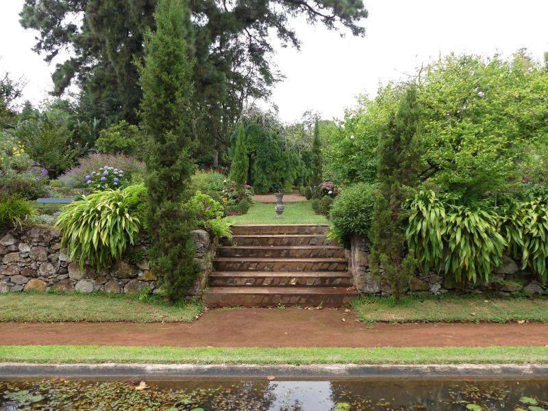 Nach einigen weiteren Stufen kommen wir dann auch tatsächlich zum Tea House, vor dem sich zwei lange Seerosenbecken erstrecken.