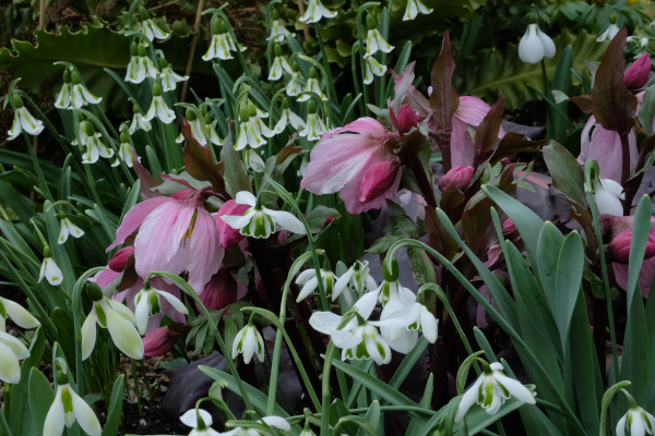 Die Helleborus thibetanus/niger Hybride 'Pink Ice' ist dieses Jahr umzingelt ... ;)