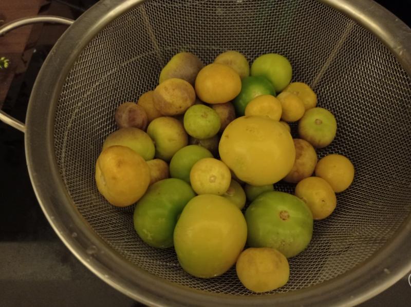 Danke. Ich habe übrigens vergessen die zweitwichtigste Zutat aufzunehmen - Koriander. Jetzt nachgeholt. Am Sonntag habe ich wieder Tomatillos zubereitet. Hier die Früchte. Handelt sich sowohl um Verde (wobei die dieses Jahr bei mir zur Hälfte purpurfarben sind, ist gut oben links bei drei Stück zu sehen, liegt mit Sicherheit am Samenkorn der wohl von beiden Sorten stammt) als auch amarillo.Eric hat geschrieben: ↑3. Sep 2020, 11:04