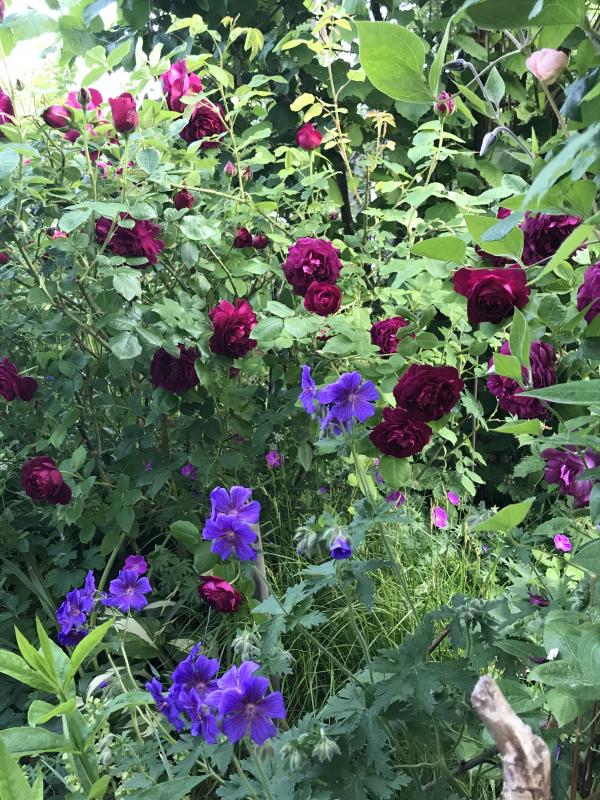 Der ‚Cardinal de Richelieu‘ wächst bei mir hervorragend im Halbschatten.