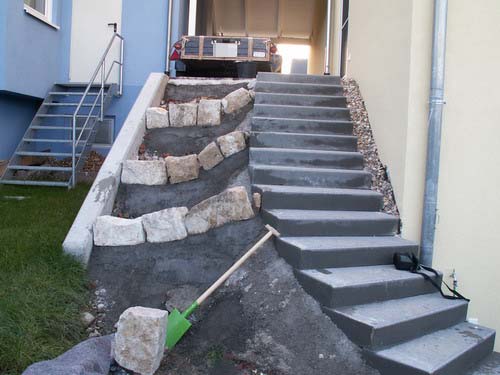Das hat übrigens eine Gartenbaufirma gemacht. Die Muttererde liegt bereits im Garten bereit. Wir möchten auf jeden Fall bis zur Kante der Stützmauer bzw. der Treppe auffüllen. Es wäre also dann schon eine Schicht Erde vorhanden. Ob man vor dem Aufbringen der Muttererde von dem Schutt was abtragen kann, bin ich mir nicht sicher. Nicht dass die Treppe abrutscht