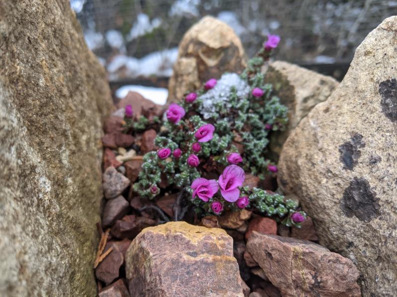 Sax. oppositifolia var. latina hat den Schnee der letzten Nacht gut überstanden...wohl auch deshalb ist er sehr weit verbreitet...