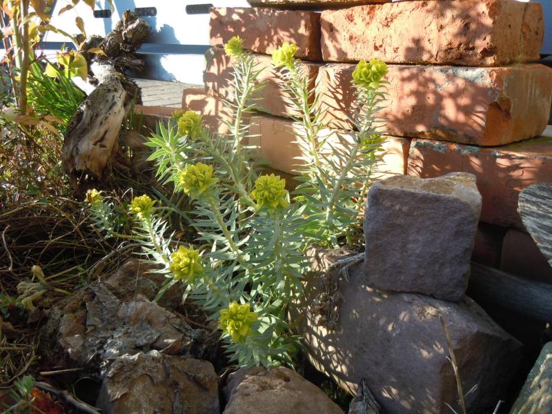 Erst hat sie sich sehr zögerlich versamt, teils mit E. myrsinites gemischt (die ich eigentlich alle entfernt habe).